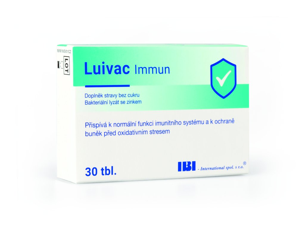 Luivac Immun® je inovativní doplněk stravy obsahující zinek, který přispívá k normální funkci imunitního systému. Dále obsahuje unikátní kombinaci lyofilizovaných (vysušených) a purifikovaných (vysoce přečištěných) částí 8 bakteriálních kmenů. Vyrobeno dle zásad správné výrobní praxe.